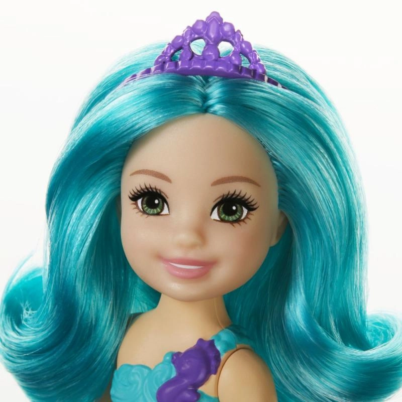 Le bambole Chelsea sirena portano nel gioco allegri colori arcobaleno e dettagli scintillanti. Capelli vivaci, accessori di impatto e code dal design esclusivo rendono ogni bambola un personaggio originale per infinite avventure sottomarine. Ideali per il gioco in acqua e all’asciutto.