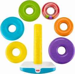 Questa piramide di anelli è progettata per massimizzare il divertimento e l'apprendimento. I bambini possono afferrare e impilare gli anelli colorati sulla base oscillante. L'anello più piccolo è fatto in modo che scuotendolo, le palline colorate all'interno producano un suono per un’ulteriore stimolazione sensoriale.