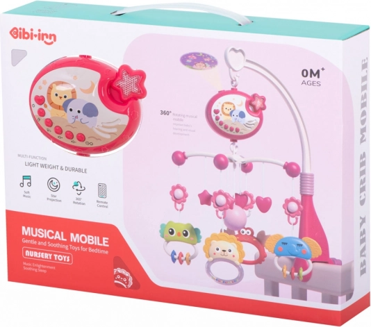 Giostrina musicale con proiettore di stelle e telecomando per culla – Rosa