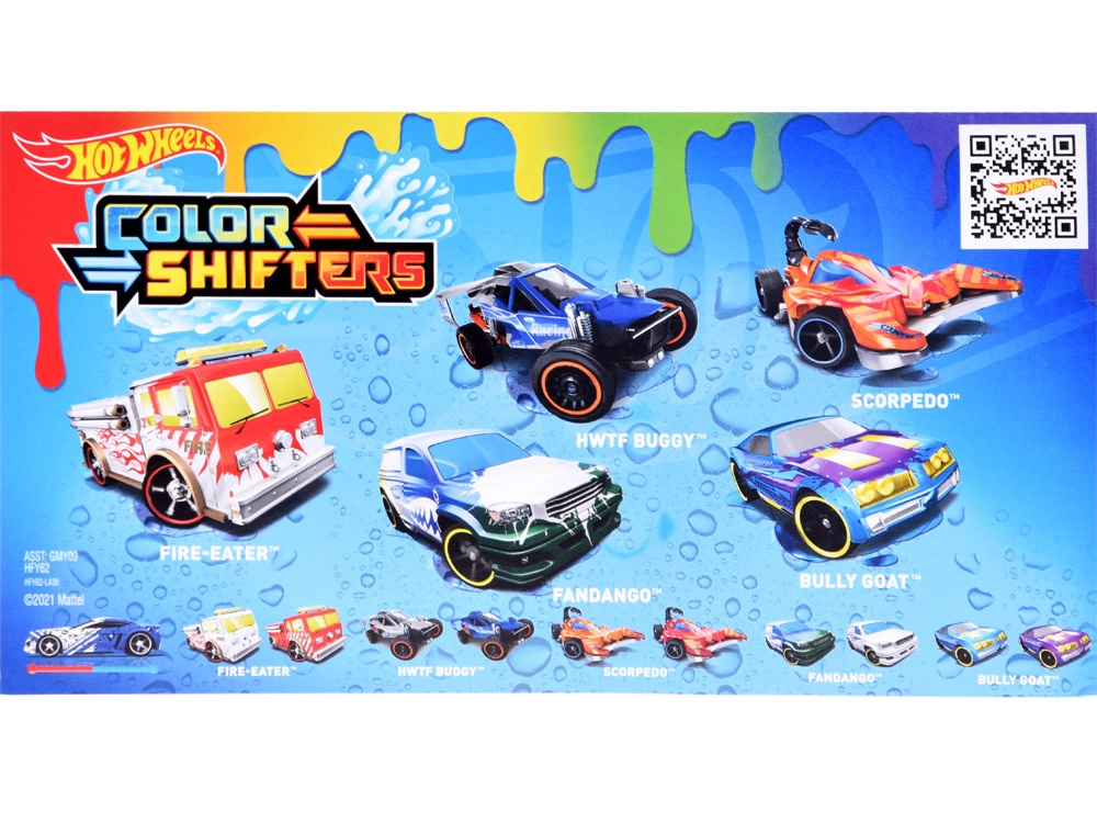 Scopri la magia della trasformazione con il set da 5 HOT WHEELS Color Shifters. Basta immergere le macchinine in acqua calda per cambiare colore e in acqua fredda per tornare al design originale. L’effetto è ripetibile all’infinito: divertimento che non stanca mai!