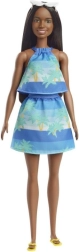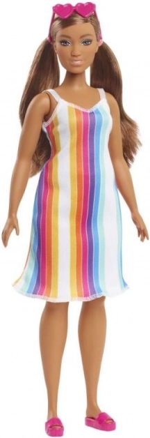 La bambola indossa un outfit estivo alla moda con colori e motivi ispirati alla spiaggia.