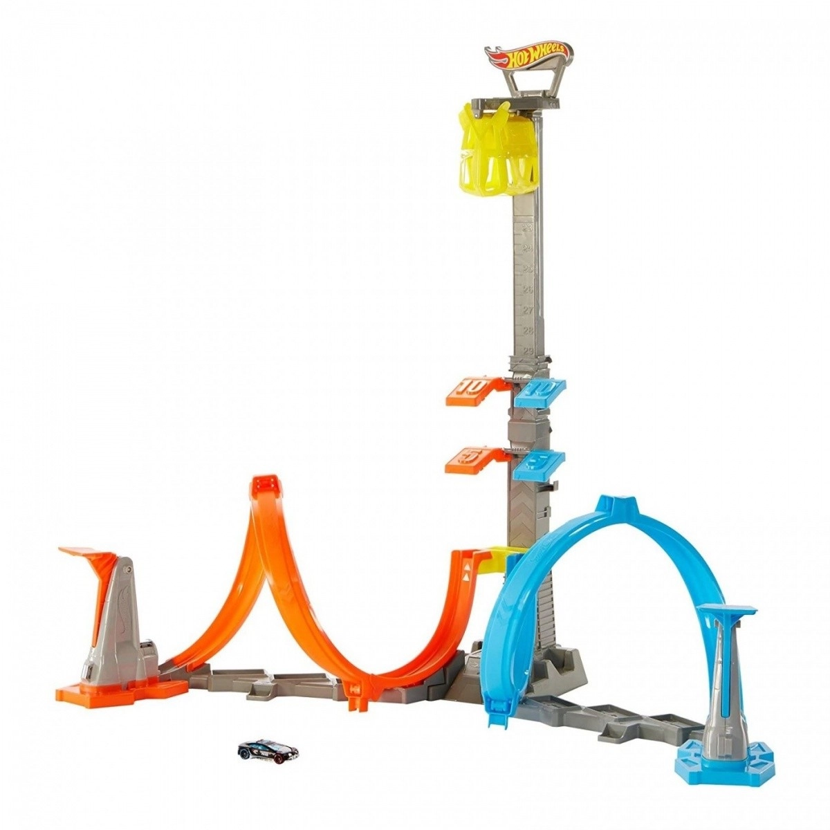 La pista HOT WHEELS con torre e gabbia del vincitore regolabile porta duelli d’azione e acrobazie fino a circa 60 cm di altezza. I bambini si divertiranno con loop veloci, pannelli segnapunti e un finale emozionante, in cui la gabbia si chiude automaticamente dietro l’auto vincente. La pista si ripiega facilmente per essere riposta ed è ideale per 1–2 giocatori. Incluso veicolo in metallo 1:64.