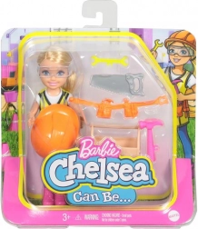 <\div> <\div>Ogni bambola Chelsea nel ruolo di costruttore è dotata di giubbotto di sicurezza, casco e strumenti come una sega o una chiave.