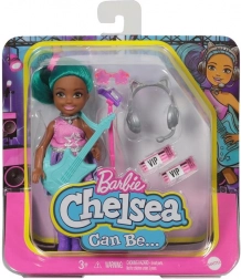 <\div> <\div>La bambola Chelsea come star del rock con una chitarra turchese e cuffie argentate è pronta per l'avventura musicale.