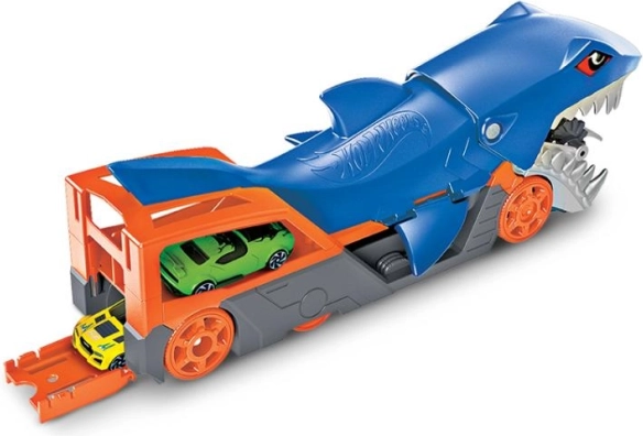 Il trasportatore Hot Wheels City Shark Transporter porta azione e ordine in uno. Il design iconico ispirato al modello Shark Bite offre mascelle mordenti che, spingendo il veicolo in avanti, “scattano” riponendo la macchinina all’interno. I bambini adorano l’effetto spettacolare dell’inghiottimento, i genitori apprezzano il pratico stivaggio e trasporto.