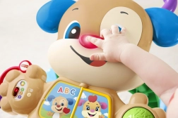 Pulsanti, lucine, ingranaggi, cursori e un libricino con il cagnolino sviluppano la motricità fine e insegnano la relazione causa-effetto. Musica e frasi motivano a nuove attività.