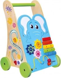 Sostieni i primi passi e la curiosità del tuo bambino con questo carrello primi passi in legno con elefante di alta qualità. Offre xilofono dal suono delicato, labirinto con perline, gioco a incastri e ingranaggi per il divertimento e lo sviluppo della motricità. Le ruote in gomma silenziose proteggono il pavimento e la struttura stabile in legno FSC garantisce un gioco sicuro da 18 mesi.
