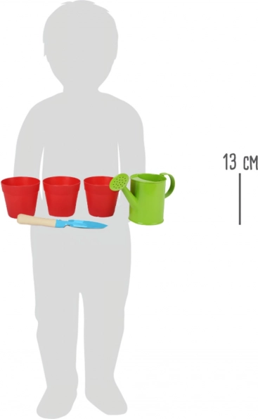 - 3× vasetto, 1× annaffiatoio, 1× paletta (totale 5 pz)