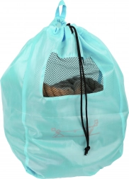 Sacca turchese con finestra a rete che facilita il trasporto e lo stoccaggio della corda dopo il gioco.