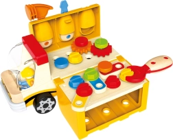 Robusto camion che combina legno e plastica per una lunga durata e una maneggevolezza leggera. Il cassone ribaltabile aggiunge elementi realistici al gioco.