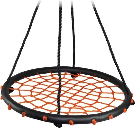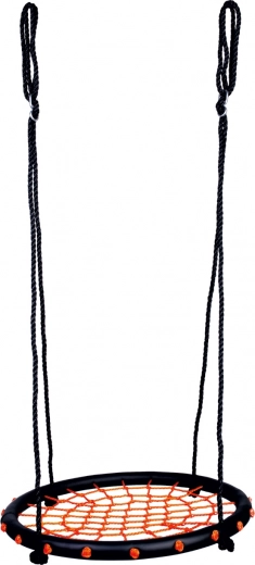 Altalena circolare con intreccio di corde, adatta all’uso in spazi esterni e interni. Caratteristiche principali: diametro dell’altalena 60 cm, portata 100 kg, uso interno ed esterno
