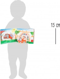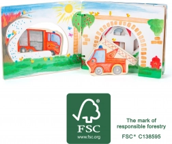Con il libretto di legno Pompieri, i bambini si immergono nel mondo d'azione dei pompieri. Il libro è fornito di figure di legno che ispirano l'invenzione di storie proprie. Dopo aver spento il fuoco, i bambini possono rimettere le figure nel libro, imparando così i fondamenti dell'ordine e della responsabilità.