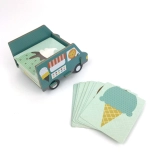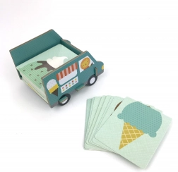 Golosi, unitevi! Un gioco di carte intelligente e divertente in cui componi coni gelato, raccogli palline e aggiungi la granella. Include 52 carte illustrate e 4 camioncini del gelato, è ideale per 2–4 giocatori, dura circa 10 minuti ed è realizzato con materiali riciclati e inchiostri vegetali. Ottima scelta per bambini da 4 a 8 anni e conforme a tutte le norme di sicurezza.