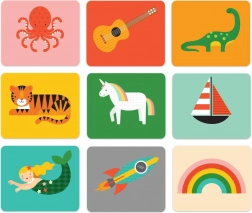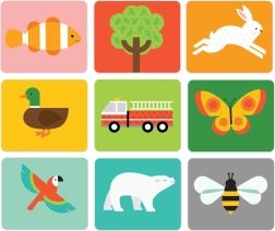 Immagini colorate e chiare di animali, oggetti e mezzi di trasporto facilitano l’indovinare anche ai giocatori più piccoli.