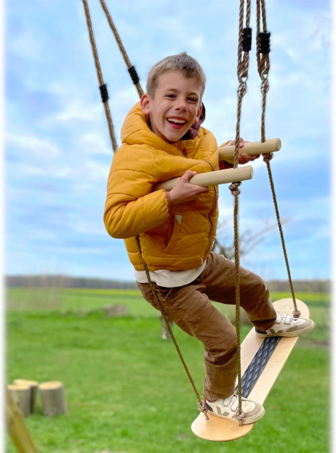 Questa altalena insolita unisce divertimento e sviluppo motorio. La tavola in robusto compensato con bordi rialzati e le maniglie regolabili in legno massello consentono ai bambini di allenare in sicurezza equilibrio, coordinazione e stabilità. Grazie alla superficie antiscivolo, dondolarsi in piedi è più sicuro e confortevole.