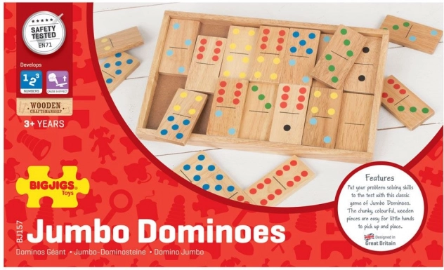 Il jumbo domino di legno è perfettamente dimensionato per i piccoli, che possono facilmente gestire la presa e il posizionamento dei pezzi. Le caratteristiche principali di questo gioco includono: