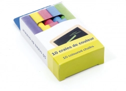 Pratico set di gessetti scolastici in confezione di cartone, ideale come complemento per lavagne per bambini e da ufficio. Contiene 10 pezzi di gessetti colorati per scrivere e disegnare comodamente sulla lavagna.