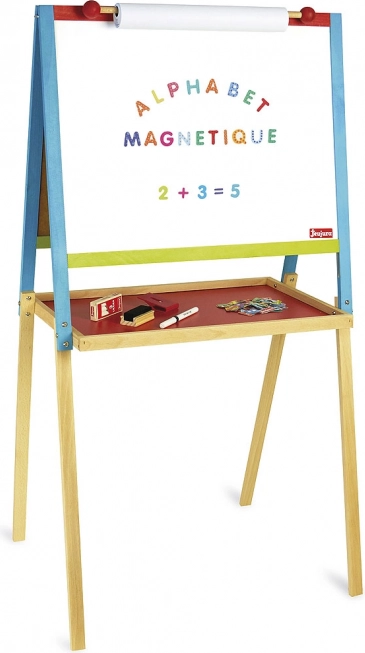 Stimola la creatività dei bambini con questa solida lavagna in legno 2 in 1. Offre una superficie nera per gessetti e una superficie bianca magnetica per pennarelli, portarotolo di carta, ampio ripiano e ricchi accessori. Prodotta in Francia in legno massello, con finitura a base d’acqua: una soluzione sicura e resistente per la creatività di tutti i giorni.