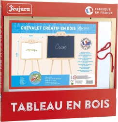 Il cavalletto in legno Jeujura con lavagna multifunzione offre uno spazio versatile per disegnare e scrivere. La lavagna bifacciale è adatta sia ai gessetti che ai pennarelli, garantendo un ampio utilizzo nel gioco e nell’apprendimento. Il cavalletto in legno è dotato di un vano portaoggetti dove i bambini possono riporre gli accessori necessari. La confezione include tre gessetti, un pennarello e un set di lettere magnetiche da scrittura.