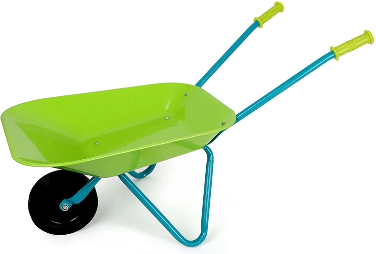Vasca in metallo, telaio robusto e una ruota anteriore garantiscono buona stabilità e manovrabilità semplice. Ideale per trasportare terra, foglie e vasi di fiori.