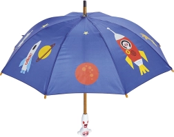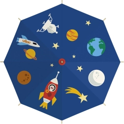 Motivi di pianeti, razzi e stelle stimolano la fantasia e rendono ogni passeggiata divertente, anche sotto la pioggia.