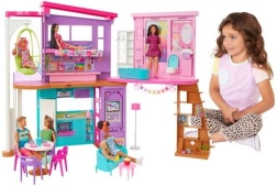 Scopri infinite possibilità offerte dalla Casa delle vacanze di Barbie. Questa casa a due piani include camera da letto, bagno, cucina, sala da pranzo, soggiorno e guardaroba. Il design moderno e lo stile specifico di Barbie ispirano i bambini a raccontare storie creative.