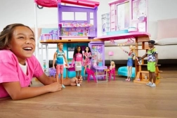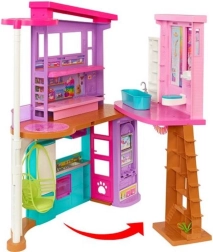 La casa delle vacanze dispone di due livelli e sei aree di gioco come la camera da letto, il bagno e il soggiorno. Offre un design moderno di Barbie.