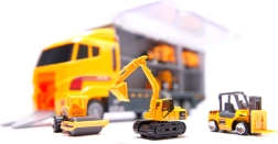 Questo trasportatore e playset 2 in 1 unisce divertimento e praticità. Il camion con pareti trasparenti contiene sei veicoli da costruzione dettagliati e funge anche da organizer compatto. I bambini si godranno un gioco realistico in cantiere grazie alle parti mobili e alla pratica rampa estraibile con pulsante.
