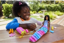 Il set ispirato alla serie BARBIE “It Takes Two” offre accessori realistici e dettagli accattivanti che favoriscono il racconto creativo di storie. La bambola indossa un outfit moderno per la natura – maglietta a righe, salopette “in denim” e scarpe gialle – ed è pronta per l’avventura con il suo cagnolino.