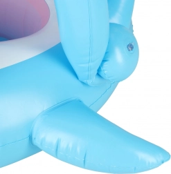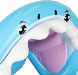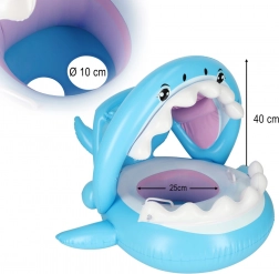 La poltroncina gonfiabile per bambini con allegro design a squalo è ideale per i primi approcci all’acqua in piscina, al fiume o al lago. Il baldacchino removibile protegge dal sole, mentre il sedile con passaggi per le gambe mantiene il bambino stabile e comodo.