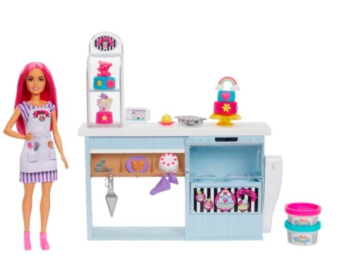 Scoprite la gioia della pasticceria con il set di gioco BARBIE Pasticceria. I bambini possono cuocere, decorare ed esporre cupcake e biscotti grazie a oltre 20 accessori e a una realistica stazione da fornaio. Inclusa una bambola BARBIE pasticciera più minuta con capelli rosa, stampi e impasti in rosa e blu. Basta inserire l’impasto nel “forno”, abbassare la leva e guardare come la torta “cresce”, quindi decorarla sul supporto con gli accessori. Un regalo perfetto per bambini dai 3 anni in su.