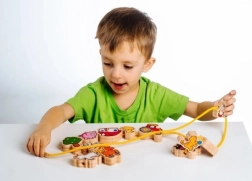 Questo gioco di infilatura offre ai bambini la possibilità di imparare e sviluppare le abilità motorie divertendosi.
