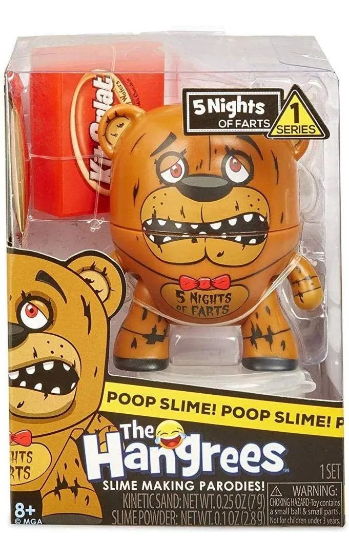 Scopri la divertente figurina da collezione Hangrees Affamato della serie 1, che farà felici bambini e fan delle parodie. Basta nutrirlo e agitare bene – e nascerà uno slime colorato! Nella confezione trovi una mini toilette per conservare lo slime e accessori che parodiano marchi popolari. Sono disponibili 6 diversi Affamati per un divertimento e un collezionismo ancora maggiori.