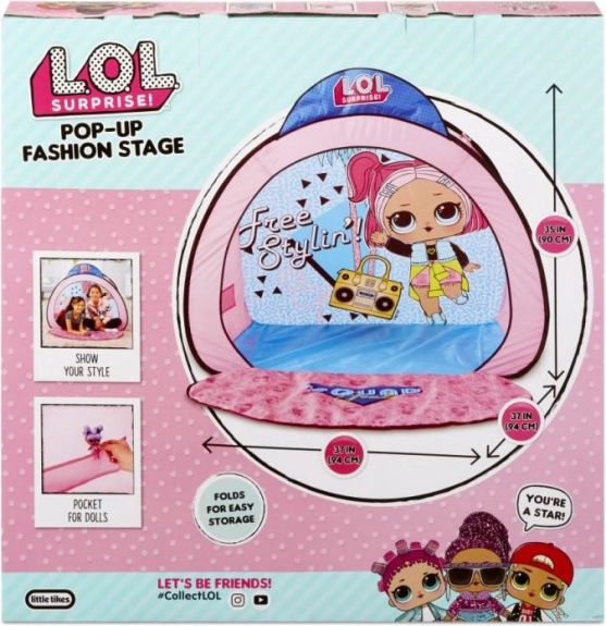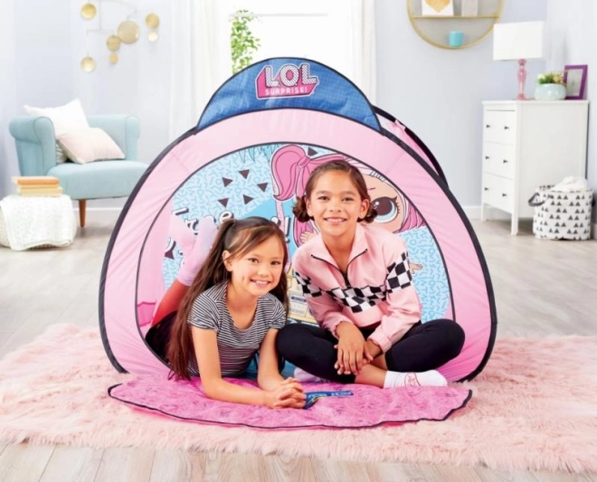 La tenda è decorata con immagini delle stilizzate figure di LOL Surprise, garantendo un'esperienza di gioco interattiva e magica.