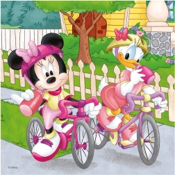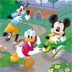 Scopri la magia del puzzle con i personaggi preferiti DISNEY. Il set di tre puzzle da 55 pezzi porta le avventure sportive di MICKEY, MINNIE e dei loro amici – corsa, basket e bicicletta. Componendo, i bambini allenano pazienza, pensiero logico e coordinazione occhio–mano.