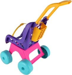 Leggero passeggino in plastica per bambole con manico alto e ruote stabili, ideale per giocare in casa e all’aperto. Offre una cintura di sicurezza per la bambola, un pratico cestino sotto il manico e una maneggevolezza facile grazie al peso ridotto e alla costruzione robusta.