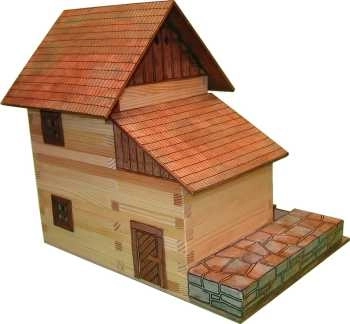 - Listelli in legno, accessori in carta (finestre, porte, parti del tetto), manuale di montaggio, testi sulla storia dell’architettura popolare