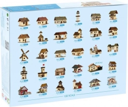 Crea un presepe natalizio iconico con questo set di costruzione in legno meticolosamente realizzato. Include listelli di legno, pezzi per il tetto e frontoni, e sagome di cartone dettagliate per finestre e porte.