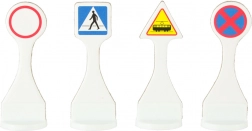 50 pz di segnali stradali (cartoncino, altezza ca. 5 cm), 50 pz di basi in plastica, descrizioni in ceco e slovacco dei significati dei segnali