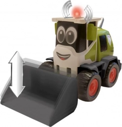 Questa adorabile pala gommata CLAAS Mini di colore verde con ruote nere e dettagli rossi entusiasmerà i più piccoli con funzioni realistiche. Premendo il pulsante si sente il rumore del motore e si accendono le luci di avvertimento. La benna azionabile a mano consente un facile sollevamento e abbassamento, favorendo la motricità fine.
