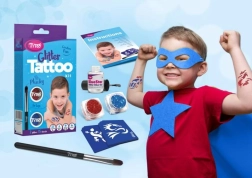 I set più grandi includono più strumenti: Occhi mobili/strass autoadesivi: puoi decorare il motivo finito. Applica una piccola quantità di colla sugli strass autoadesivi e premili sulla pelle.