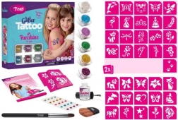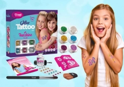 Grande set dei modelli femminili più popolari. Modelli: 57 pezzi. Colori: 6 pezzi. Il disegno di solito dura sulla pelle 8–18 giorni. La durata dipende in larga misura dal tipo di pelle e dal livello di attenzione con cui si esegue il tatuaggio. Il tatuaggio glitter è resistente all’acqua, ma può essere rimosso facilmente con alcool o olio per bambini. I set più grandi includono più strumenti: Occhi mobili/strass autoadesivi: potete decorare il disegno finito. Applicate una piccola quantità di colla per strass autoadesivi e premeteli sulla pelle. Vi auguriamo tanto divertimento!