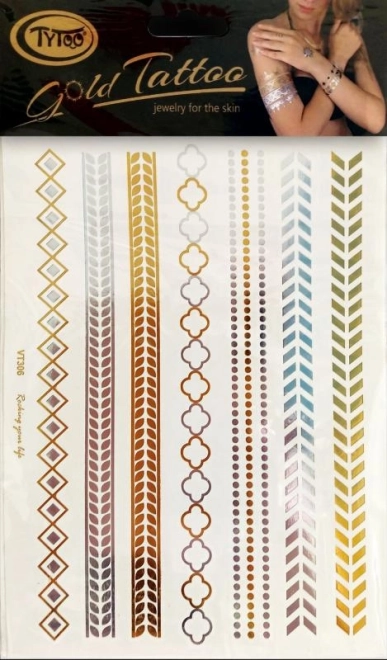 Scopri la magia dei braccialetti tatuaggi dorati TyToo, che decorano il tuo polso, braccio o caviglia. Questi tatuaggi sono un accessorio moda unico che aggiunge un tocco di lusso al tuo look.