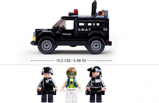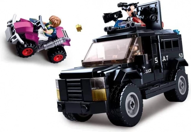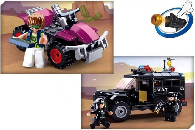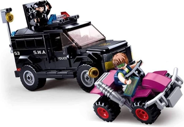 Questo dinamico set SLUBAN POLICE offre tutto per un’azione di polizia avvincente: un robusto veicolo SWAT, il quad ATV del fuggitivo e tre minifigure dettagliate con accessori. Grazie all’ABS di qualità, il modello è resistente e pronto a ore di gioco.