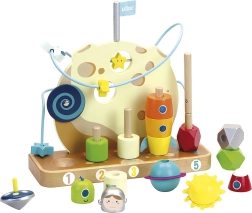 Questo stellare giocattolo in legno di Vilac porta i bambini in un mondo intergalattico, dove possono impilare pianeti, contare e far scorrere le stelle lungo il filo. Gli elementi ingegnosi favoriscono lo sviluppo della motricità fine, il pensiero logico e la percezione dei colori.