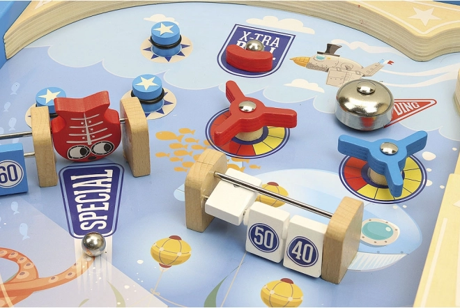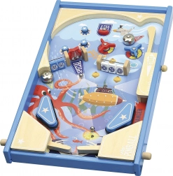 Goditi il divertimento classico con il grande flipper in legno VILAC a tema sottomarino. Struttura robusta, 3 biglie in metallo, leve sensibili e bersagli con punteggio garantiscono ore di gioco attivo, sviluppo della motricità fine e della coordinazione occhio–mano. Grazie alle gambe pieghevoli imposti l’inclinazione ideale del percorso e sfidi famiglia e amici per il punteggio più alto.