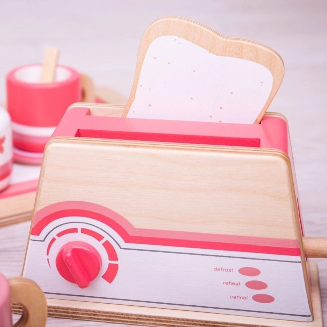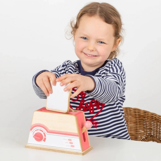 Il tostapane è realizzato in legno resistente con bordi arrotondati per un gioco in sicurezza. Adatto a qualsiasi cucina dei bambini.