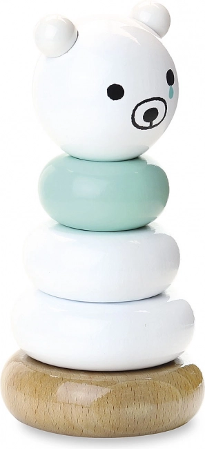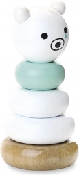 Questa elegante torre ad anelli con orsetto, in una combinazione bianco–menta e finitura in legno naturale, è il primo giocattolo educativo ideale. I bambini esercitano l’ordinamento corretto degli anelli, la distinzione delle dimensioni e il ritmo dei movimenti, mentre i colori delicati e l’espressione tenera dell’orsetto stimolano curiosità e gioco sereno.