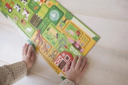 Segui i percorsi con il dito e scopri 20 oggetti nella fattoria: un divertimento che allena osservazione e pazienza.