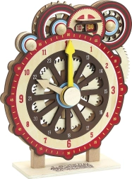 Nella confezione è inclusa una serie di carte modello per l’esercitazione, con cui i bambini consolidano le conoscenze e provano da soli a impostare e leggere l’ora. L’orologio può essere semplicemente appoggiato su un tavolo o appeso alla parete della cameretta o dell’aula. La struttura resistente in legno di qualità e la produzione ecologica garantiscono lunga durata e uso sicuro.